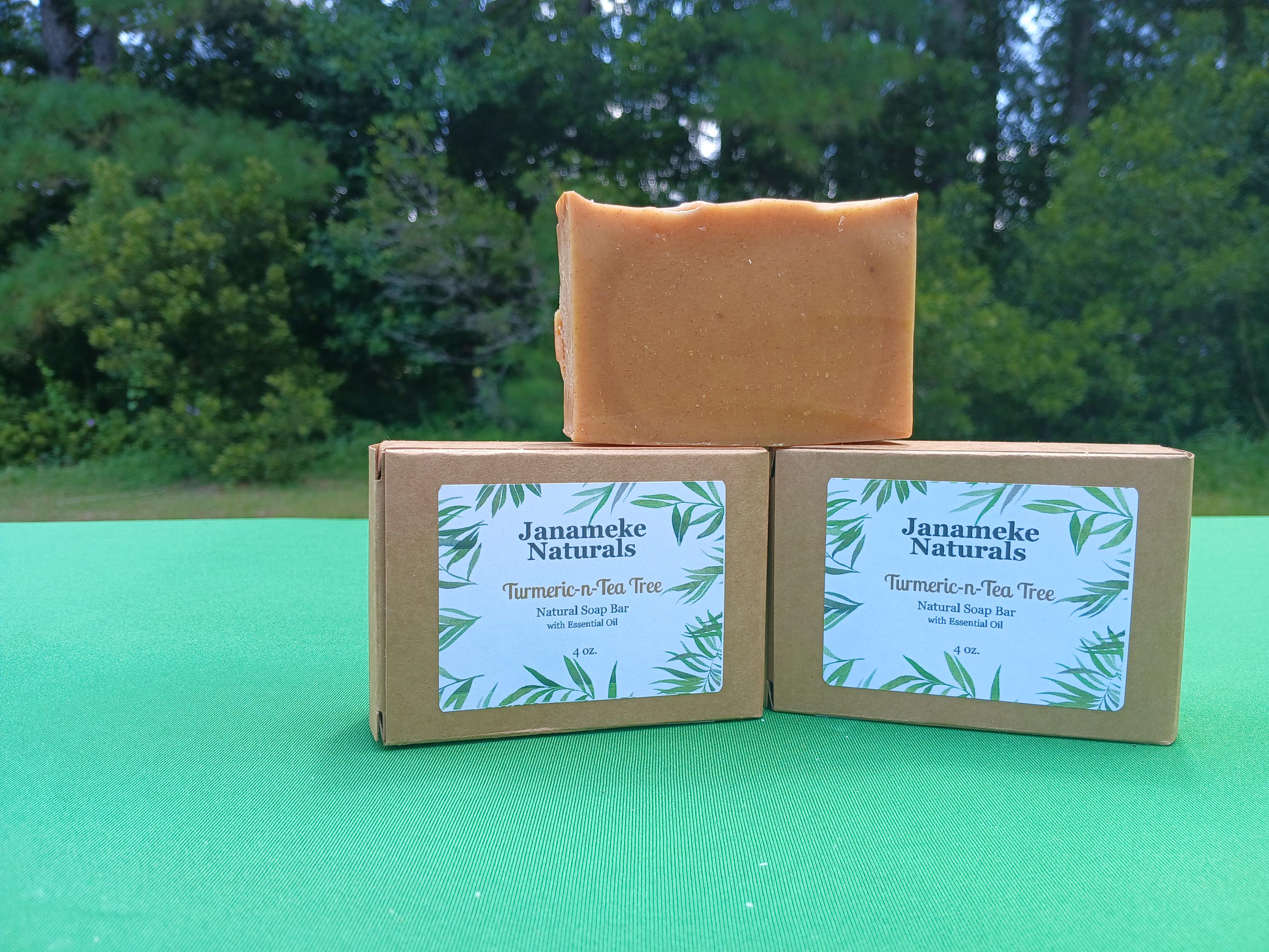 Coconut Oil Water Shea Butter Shorea Butter Sunflower Oil Sweet Almond Oil Olive Oil Sodium Hydroxide Turmeric Powder Orange Essential Oil Lemongrass Essential Oil Tea Tree Essential Oil